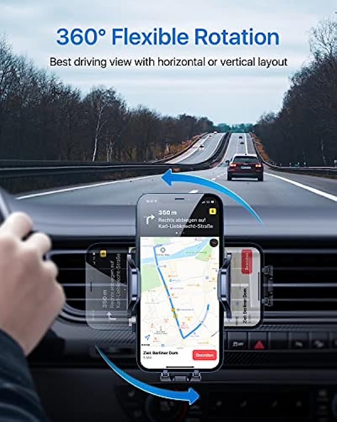 • [Easy to Adjust & Multiple Viewing Angle] This car mount for phone has a highly flexible ball-joint 360° rotation that provides infinite viewing angles. The phone car mount allows quick switching between vertically and landscape view .Position your phone at the perfect angle to enjoy a more relaxed and safer drive. - Best Driving Angle